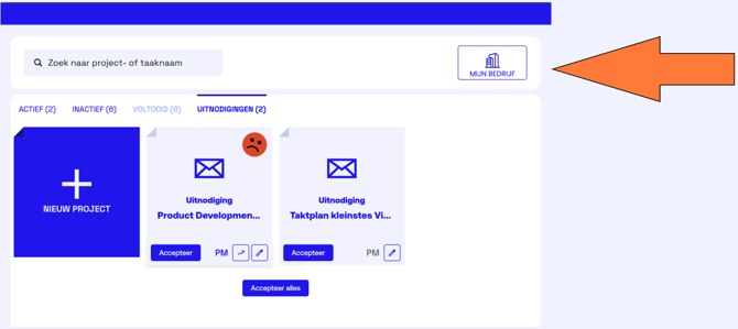 Log in als KYP-admin en klik op Mijn Bedrijf.